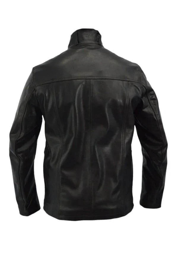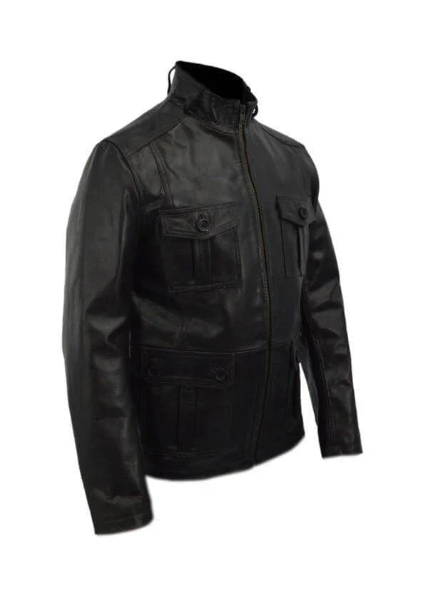 Embody the unmistakable style of Ice Cube from 22 Jump Street with this expertly crafted leather motorcycle jacket. Made from genuine or faux leather in a striking black finish, it boasts functional details including zippered cuffs and four secure zipper pockets. A buckle belt at the hem elevates its refined look, while the shirt-style collar and front zipper closure ensure both comfort and lasting wear. This jacket combines bold design with practicality, perfect for making a confident impression.