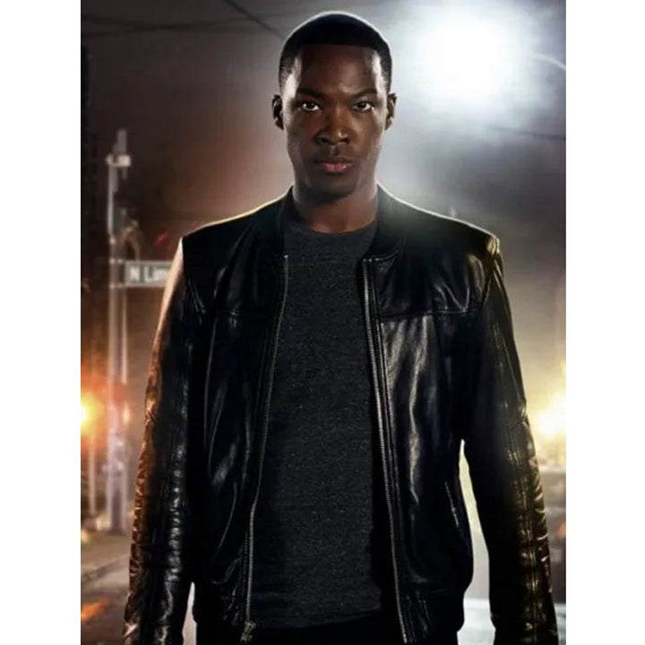 Step into action with the same fearless style as Eric Carter from 24: Legacy, portrayed by Corey Hawkins. This black leather jacket blends tactical edge with everyday versatility. Made from genuine leather and featuring a ribbed hemline and collar, it’s perfect for fans of bold characters and clean, modern fashion.