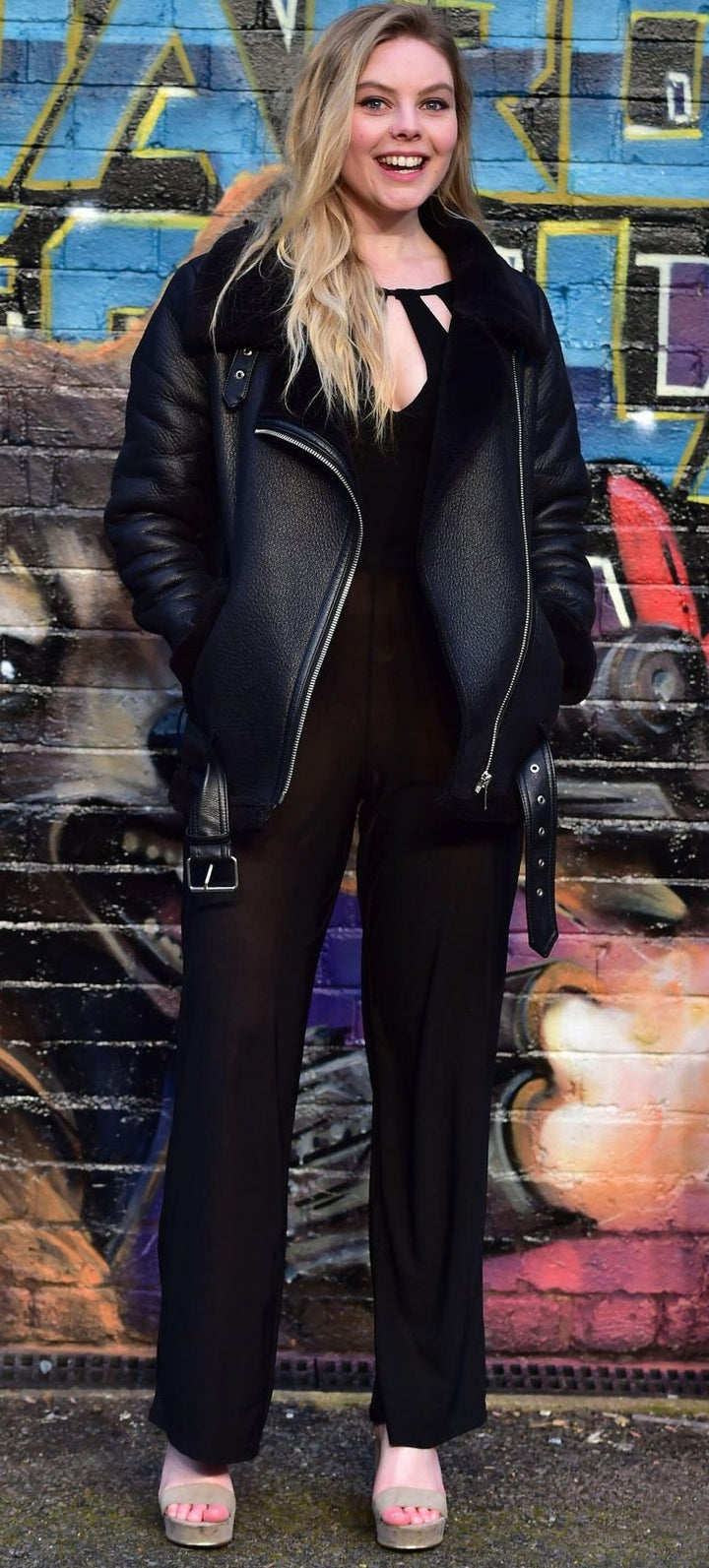 Nell Hudson at the Guardians of the Galaxy Faux Shearling Leather Coat
