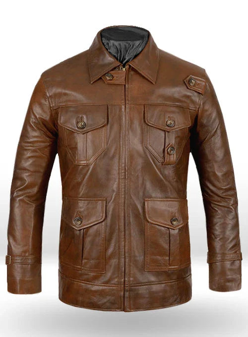 Crafted from premium genuine leather, it delivers rugged durability with a sleek, modern design. The tailored fit, minimalist silhouette, and subtle detailing make it ideal for fans, collectors, or anyone looking to channel their inner action hero. Whether for casual wear, special events, or cosplay, this jacket brings Hollywood-style confidence into your everyday wardrobe.