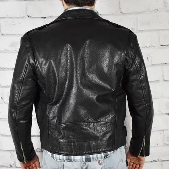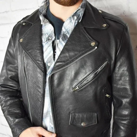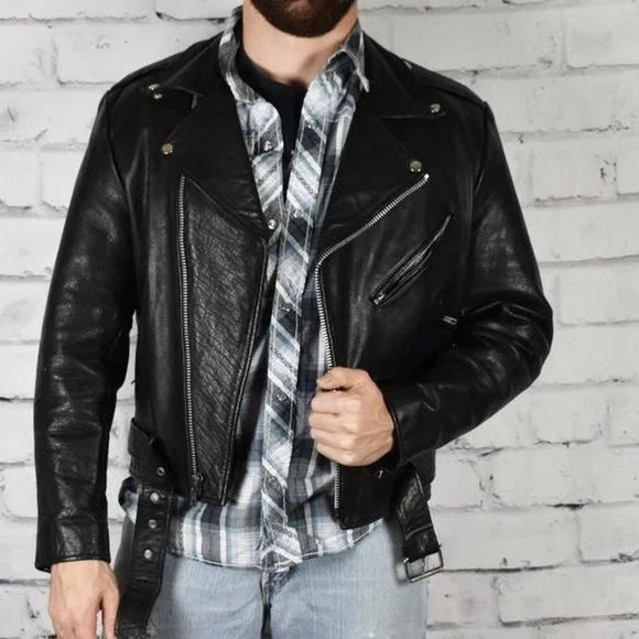 Discover the Vintage David Bowie 80s Black Leather Punk Style Motorcycle Jacket, expertly crafted from premium leather and inspired by the legendary artist's distinctive style. This jacket blends vintage appeal with bold punk elements, making it an essential piece for those seeking a standout look. Perfect for fans of David Bowie, it embodies authentic rockstar attitude. Browse our extensive collection of men's celebrity leather jackets featuring designs influenced by iconic personalities, offering exceptional quality and striking aesthetics. Elevate your wardrobe with this timeless statement piece.